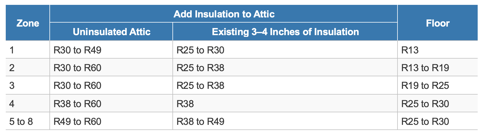 Insulation R-Value Chart