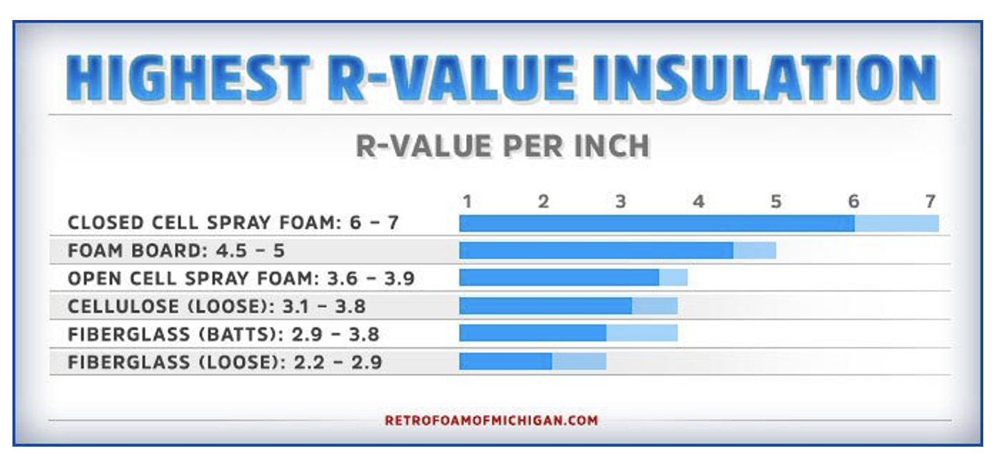 - Foam Board: R-4.5 to R-5