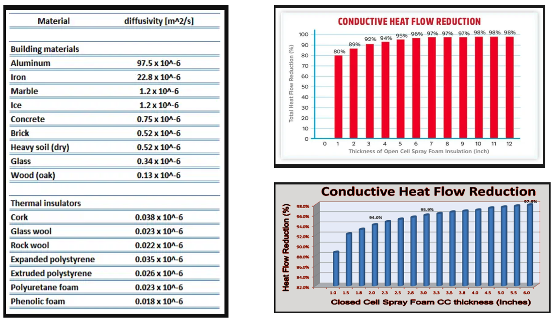 Polyurethane foam insulation (SPF) is available in closed-cell and open-cell formulas and is a superior insulating material. Typical thermal conductivity values for polyurethane foams are between 0.022 and 0.035W/m∙K.