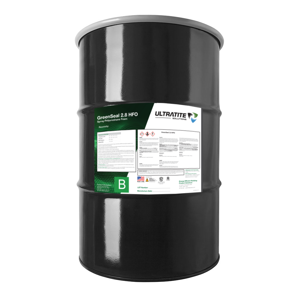 GreenSeal 2.8 HFO is a sprayed-in-place, nominal 60 psi compressive strength,rigid, HFO-blown, closed-cell spray polyurethane foam (SPF) roofing system. This two-component SPF consists of GreenSeal B Component resin and GreenSeal A Component. GreenSeal 2.8 HFO provides an R-value of 6.7 per inch and a continuous insulation without thermal breaks. GreenSeal 2.8 HFO SPF roofing systems provide excellent wind uplift resistance, are self- flashing and seamless, and the closed-cell nature provides a durable, leak-resistant roofing system.