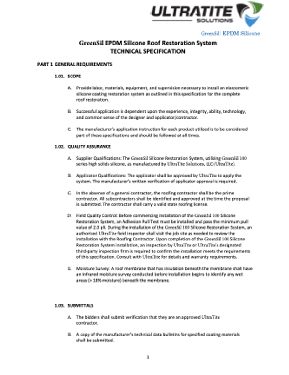 GreenSeal Silicone SPF Technical Specs